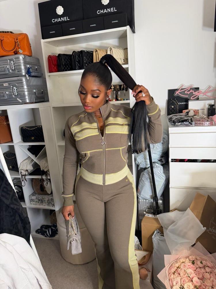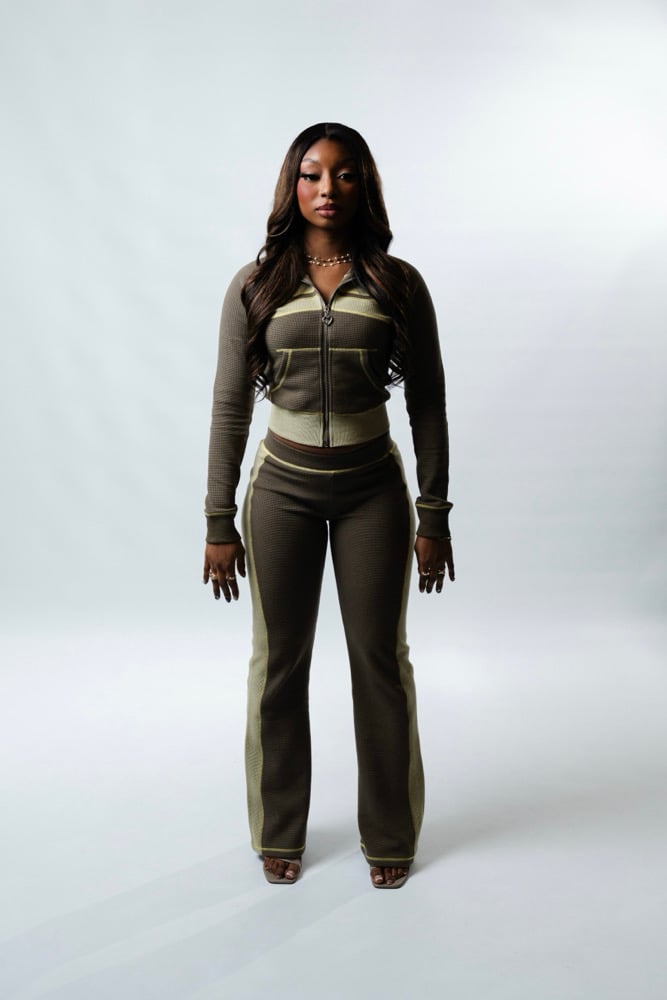 Introducing our Dicey Waffle Set a premium two-piece tracksuit designed for the girls who carry their own aura. Made from ultra-soft waffle-textured fabric, this set features a sleek contrast panel design, combining light khaki across the chest for a bold, structured look.